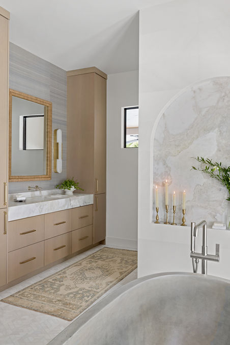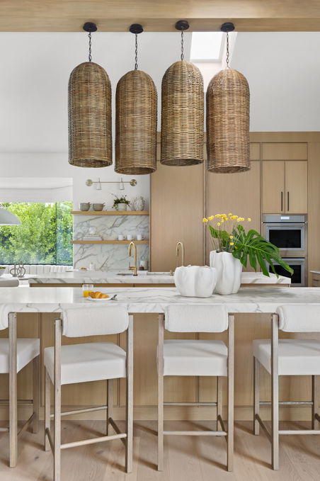 This entire home, interior, and exterior was given the full HW treatment. Fully customized to the needs of this large family, it is comfortable and luxurious with plenty of integrated storage and beautiful custom cabinetry complemented by gorgeous earthy materials and unique pieces of (performance fabric covered!) furniture. This home was designed to be a timeless sanctuary for a busy family.